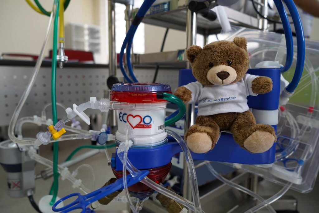 Dall’Asia il viaggio è proseguito fino all’Uzbekistan, dove l’orso ha seguito una formazione sull’utilizzo del macchinario salvavita ECMO insieme ai professionisti sanitari locali. Perché il nostro impegno non è solo intervenire nell’immediato, ma lasciare competenze, strumenti e autonomia, affinché la cura possa continuare nel tempo.