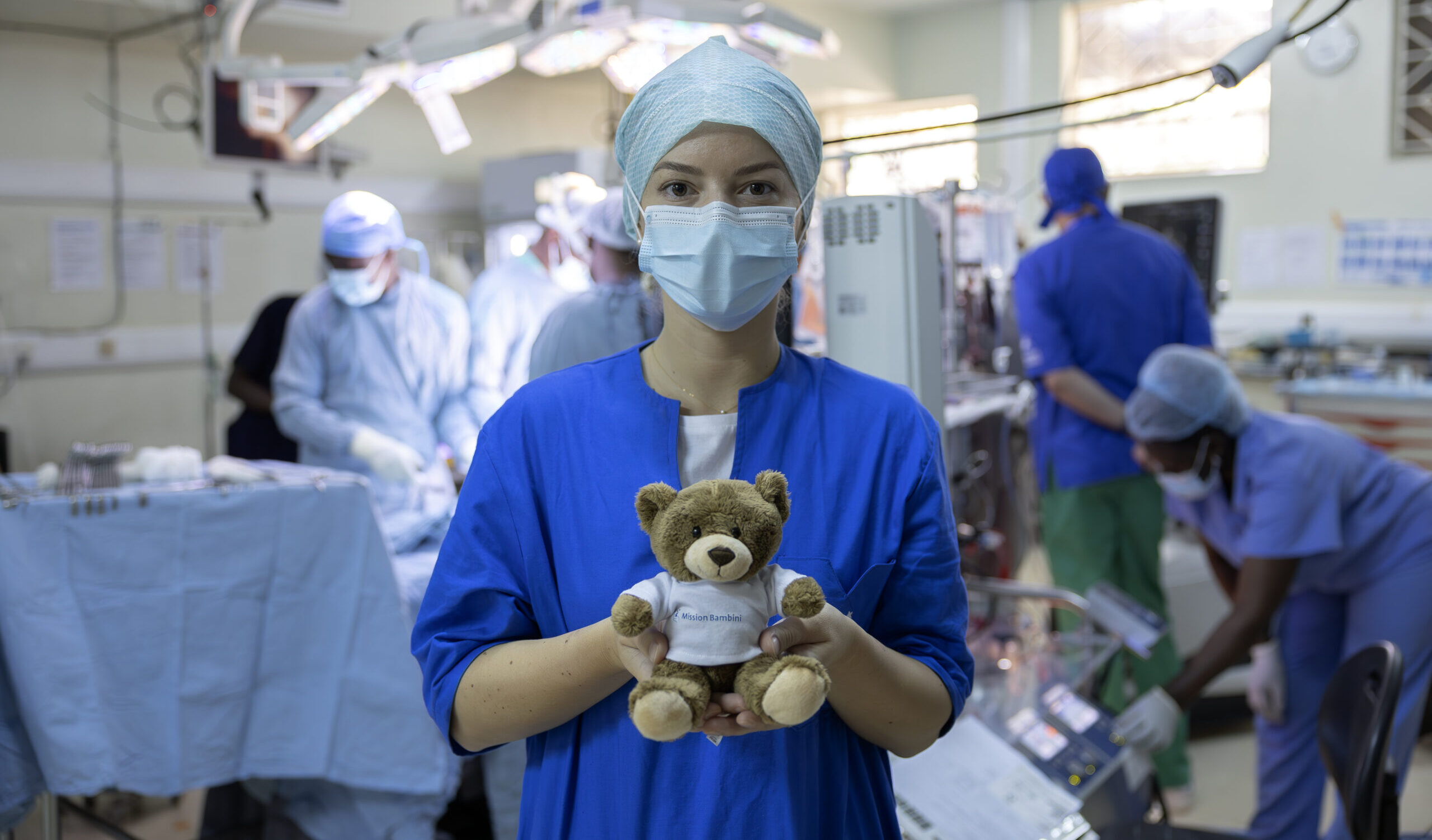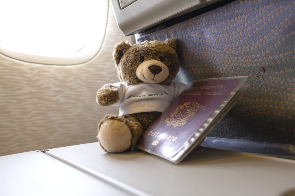 In ogni missione di Cuore di bimbi, accanto ai nostri medici, c’è un compagno speciale: l’Orso del Coraggio. Piccolo, morbido e sempre sorridente, questo orsetto non è un semplice peluche. È una presenza che accompagna le nostre équipe negli ospedali di diversi Paesi del mondo, entrando in reparto insieme ai medici e restando accanto ai bambini e alle bambine durante visite, attese e interventi.